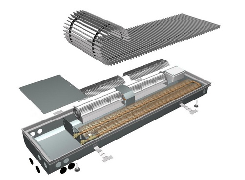 Это оборудование по своей сути является водонагревательными электрическим элементом, передающим вырабатываемое тепло окружающему пространству. Существует разные типы техники, крепящиеся к стене подобно стандартным радиаторам. Но с течением времени все популярнее становятся конвекторы в пол. Они обладают наибольшей эффективностью, по сравнению с другими разновидностями, из-за особенностей строения и монтажа.