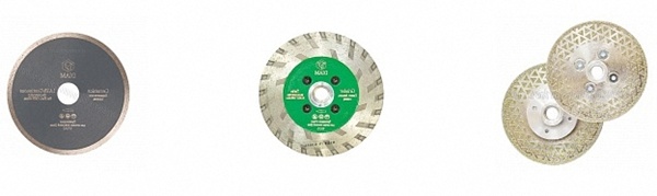 - Диски для резки натурального камня. Они производятся в различных размерах и оснащаются определенным количеством посадочных отверстий. Изделия применяют на разном оборудовании, поэтому фиксация также может отличаться. В большинстве случаев диски требуют дополнительной системы водного охлаждения.