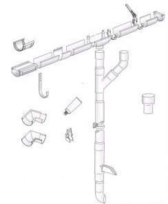 Желоба металлических водостоков выпускаются из покрытой цинком стали толщиной 0,5 мм, а желоба из поливинилхлорида – из пластика 1,6-2,0 мм. Разная толщина желобов позволяет уровнять жёсткость конструкций. Отдельные производители водосточных систем из пластика с целью экономии уменьшают толщину желоба, и для повышения жёсткости системы предусматривают установку крепёжных элементов с большой частотой.